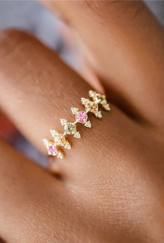 Ring aus 925 Silber Vergoldet mit bunten Zirkonia