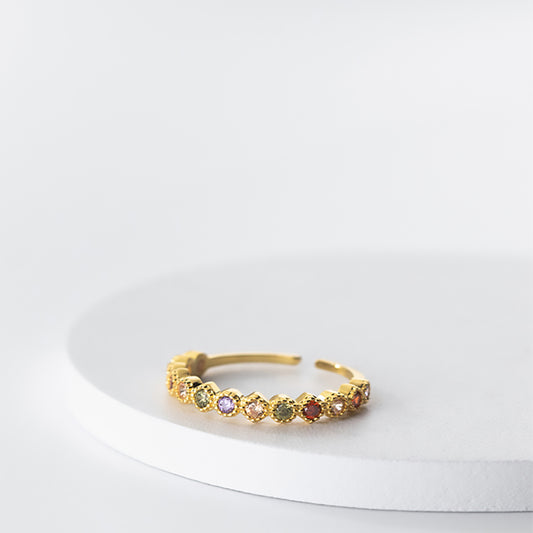 Ring Größenverstellbar aus 925 Silber Vergoldet mit bunten Zirkonia